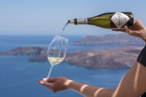Inländische Produkte: Wein, Kirschtomaten, Ackerbohnen, Katsounia (Santorini-Gurke), Militinia, Kapern, „Chorotiri“-Käse, weiße Auberginen